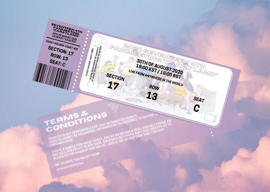 As Caratland was moved to online platforms this year, our team decided to design an unofficial ticket for carats worldwide to print out at home to have as a keepsake after the event, as if they had physically been there!